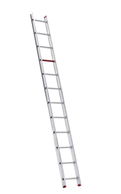 - De enkel rechte ladder neemt weinig ruimte in beslag