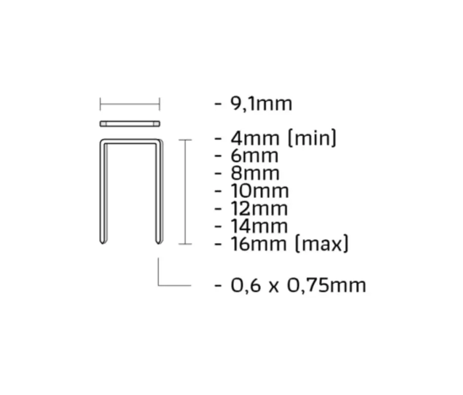 De V-niet, voorzien van een verzinkte coating en een C-punt, heeft een rugbreedte van 9,10 mm en een draaddikte van 0,60 x 0,75 mm. Deze coating zorgt voor effectieve bescherming tegen weersinvloeden en vocht.