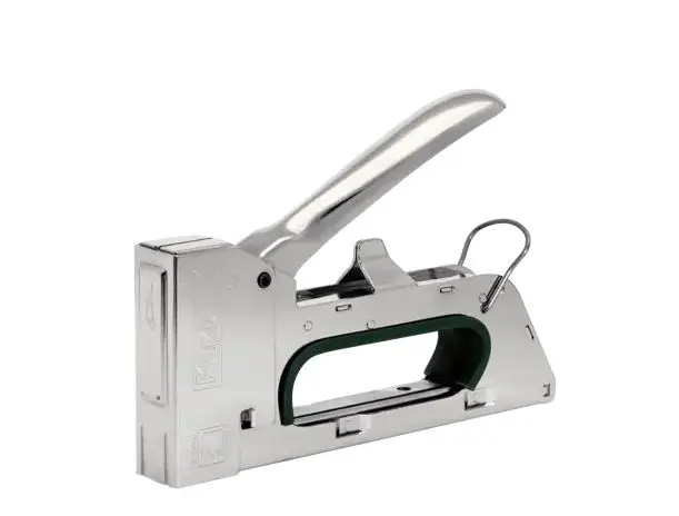 - De ergonomische handgreep met vergrendelfunctie maakt het gemakkelijk om de tacker op te bergen.