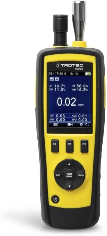 - Bovendien beschikt de PC220-deeltjesteller over een geïntegreerde HCHO-detector, waarmee u al vanaf 0,01 ppm formaldehydeconcentraties in de ruimtelucht betrouwbaar kunt registreren.