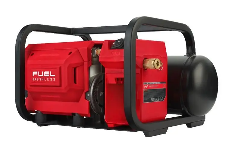 - POWERSTATE™ koolborstelloze motor levert een maximale luchtdruk van 9,31 bar en 48 l/m bij 2,8 bar, wat voldoende prestaties levert om gewone afwerkingstackers en nietmachines te laten functioneren
