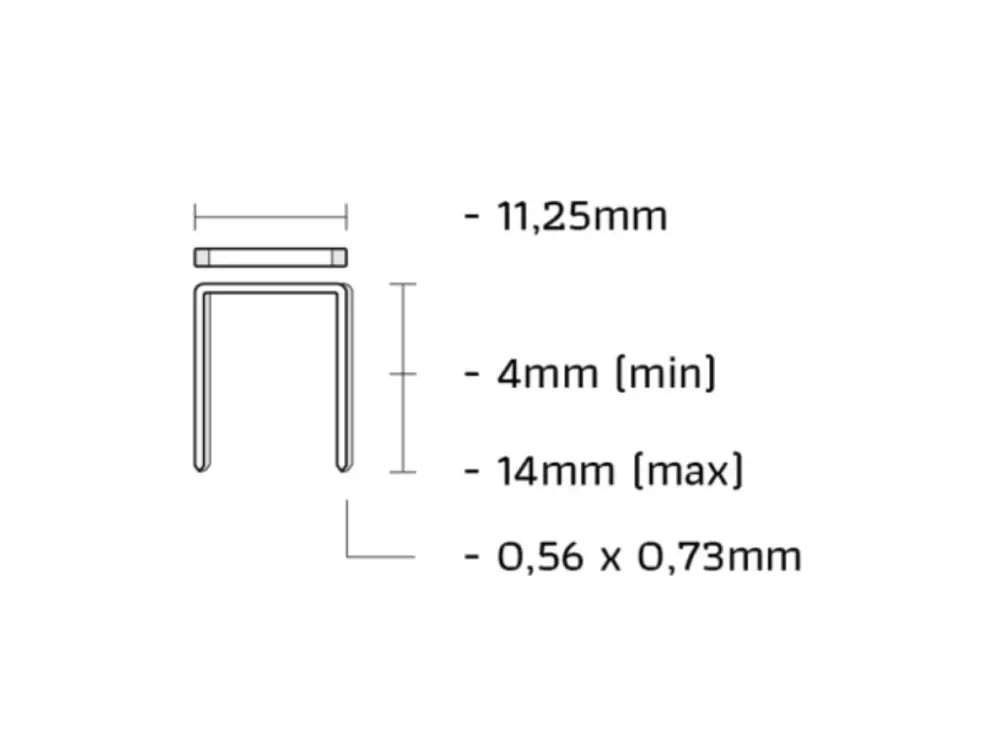 Een V-niet, vervaardigd uit roestvrij staal (RVS) met een C-punt. De rugbreedte bedraagt 9,10 mm en de draaddikte is 0,60 x 0,75 mm. Dankzij het gebruik van RVS is deze uitstekend beschermd tegen invloeden van weer en vocht.